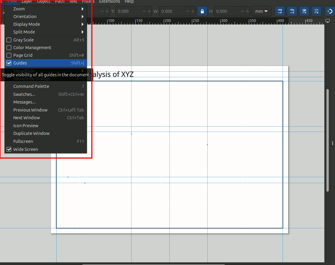 Open the .svg template file you downloaded (if you are more familiar with other vector illustration program feel free to use it (e.g. Adobe illustrator)). In inkscape, you can turn on/off the grid and guideline by going to View -> Page Grid (shift + #) and View ->