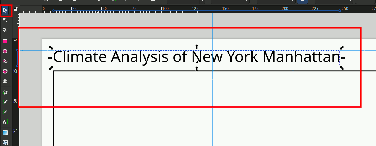 Change the title of the panel. Double click on the text and change XYZ to New York Manhattan. Once done click on the selector tool at the left toolbar, choose the text that is out of position and move it accordingly.