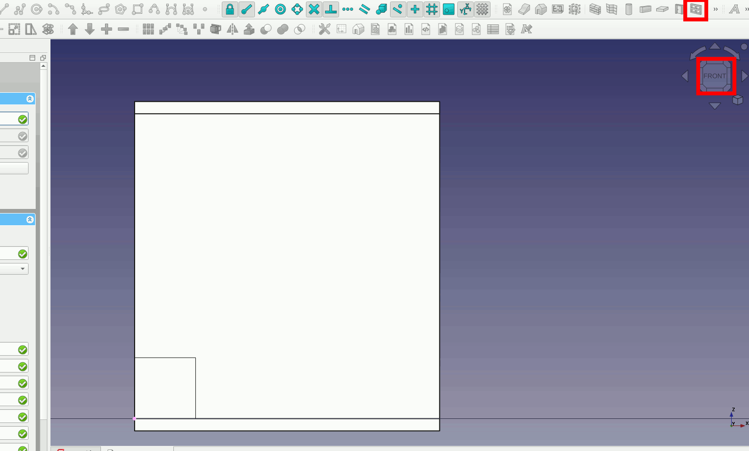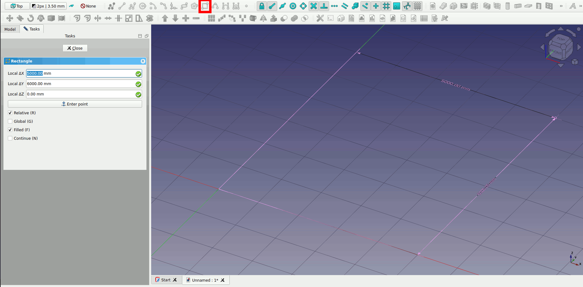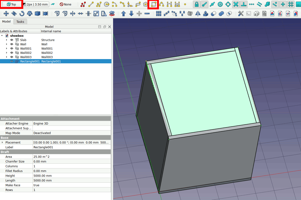 Now draw the roof slab. Draw a rectangle on top of the four walls. Make sure your working plane is Top.
