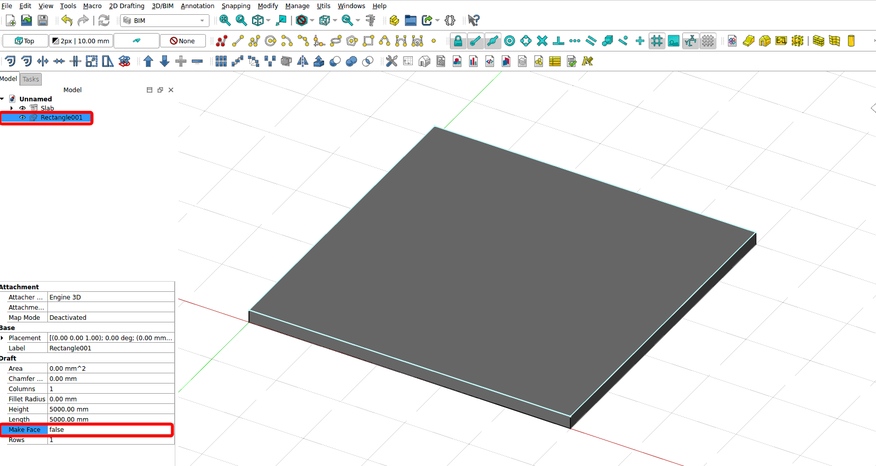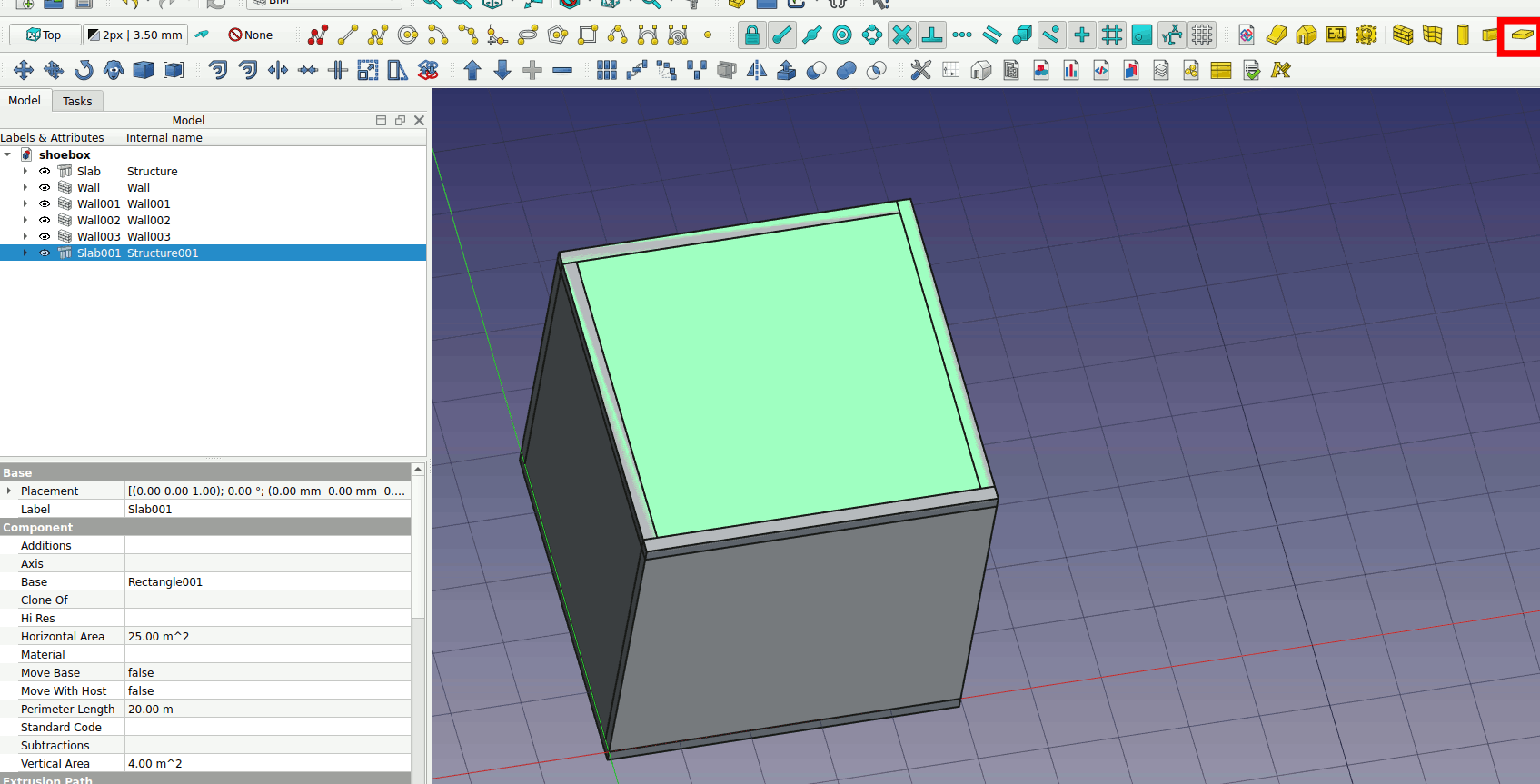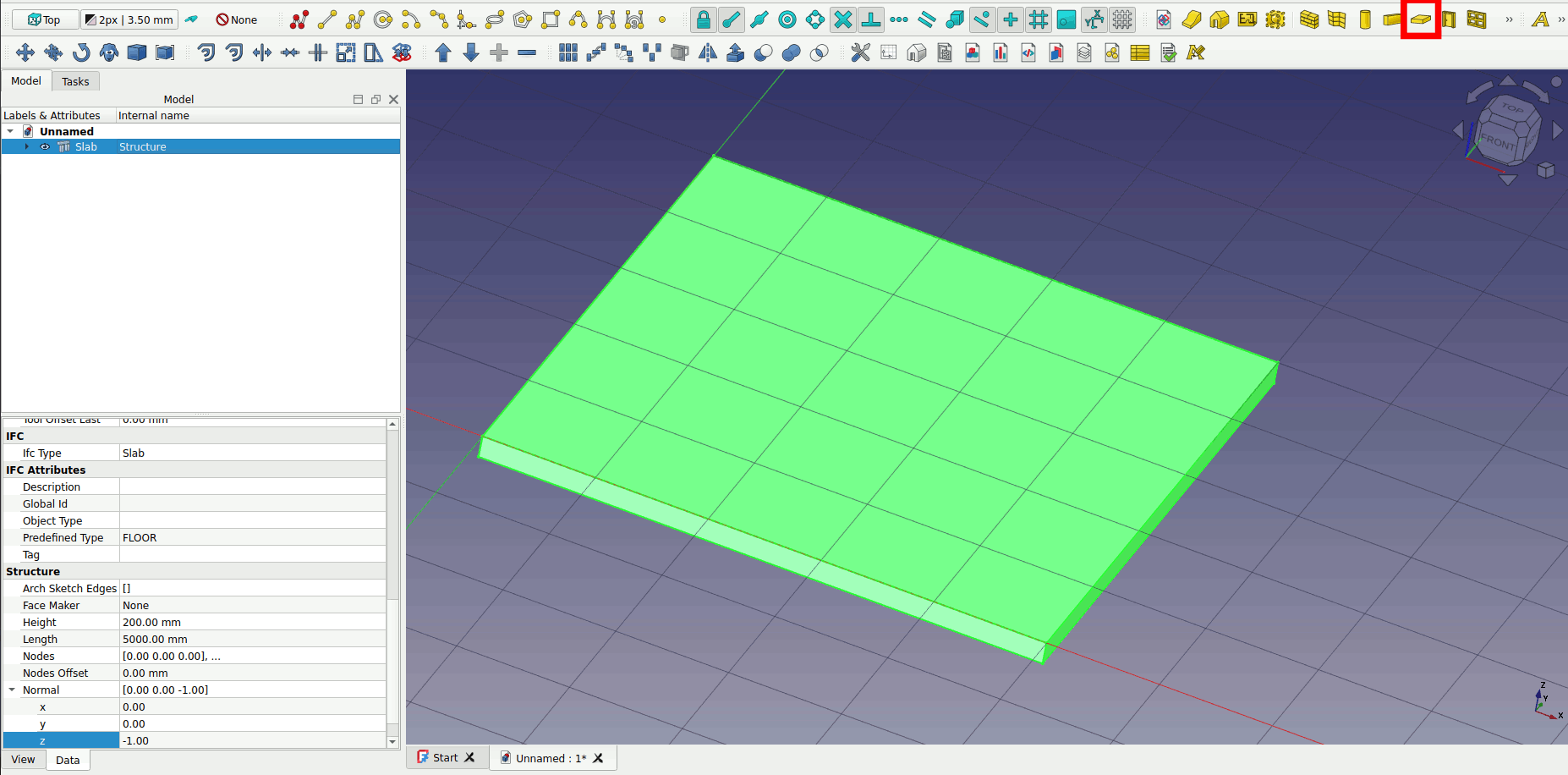 2. Select the rectangle and click on the Slab tool on the workbench. A floor slab is created.