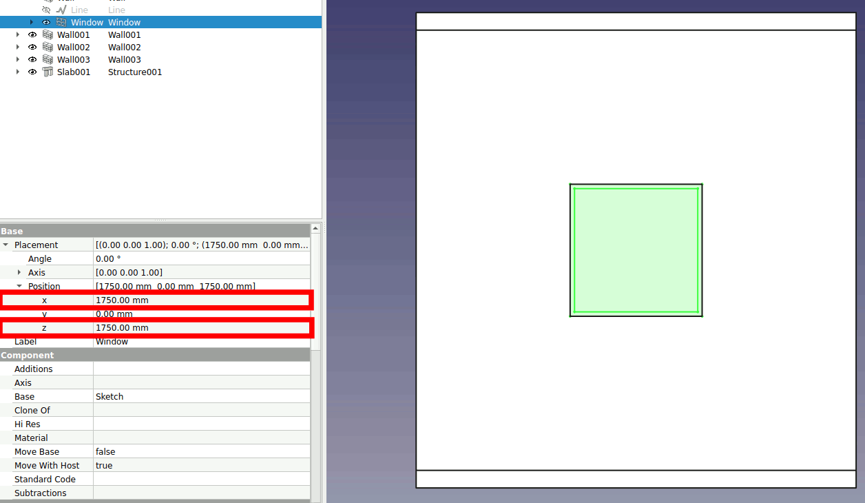 Select the window, change the position x and z of the window to 1750.