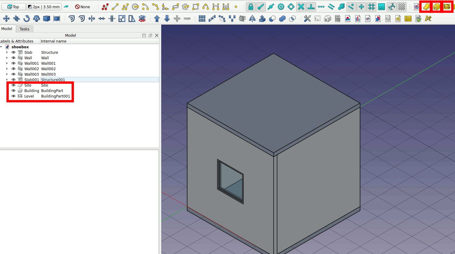 Now it is time to organize your model. Click on the Site, Building and Level icons to create the respective objects.