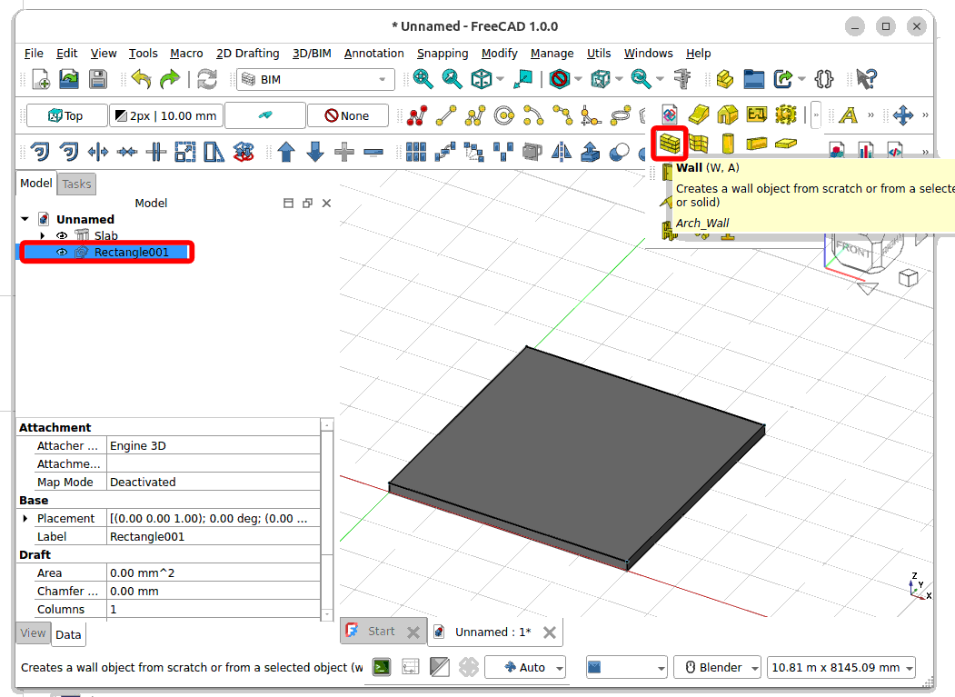 Select the rectangle and click on the ‘Wall’ icon.