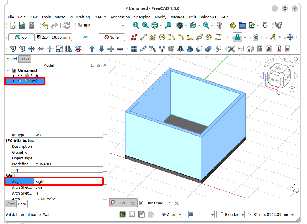 Select the created ‘Wall’. Change the ‘Align’ parameter to ‘Right’ so that the wall are within the slab.