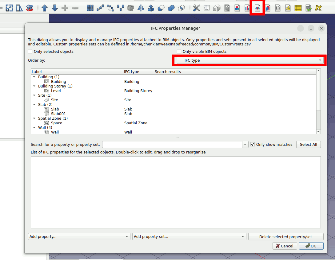 Click on Manage IFC Properties … At the window choose the Order by to IFC type.