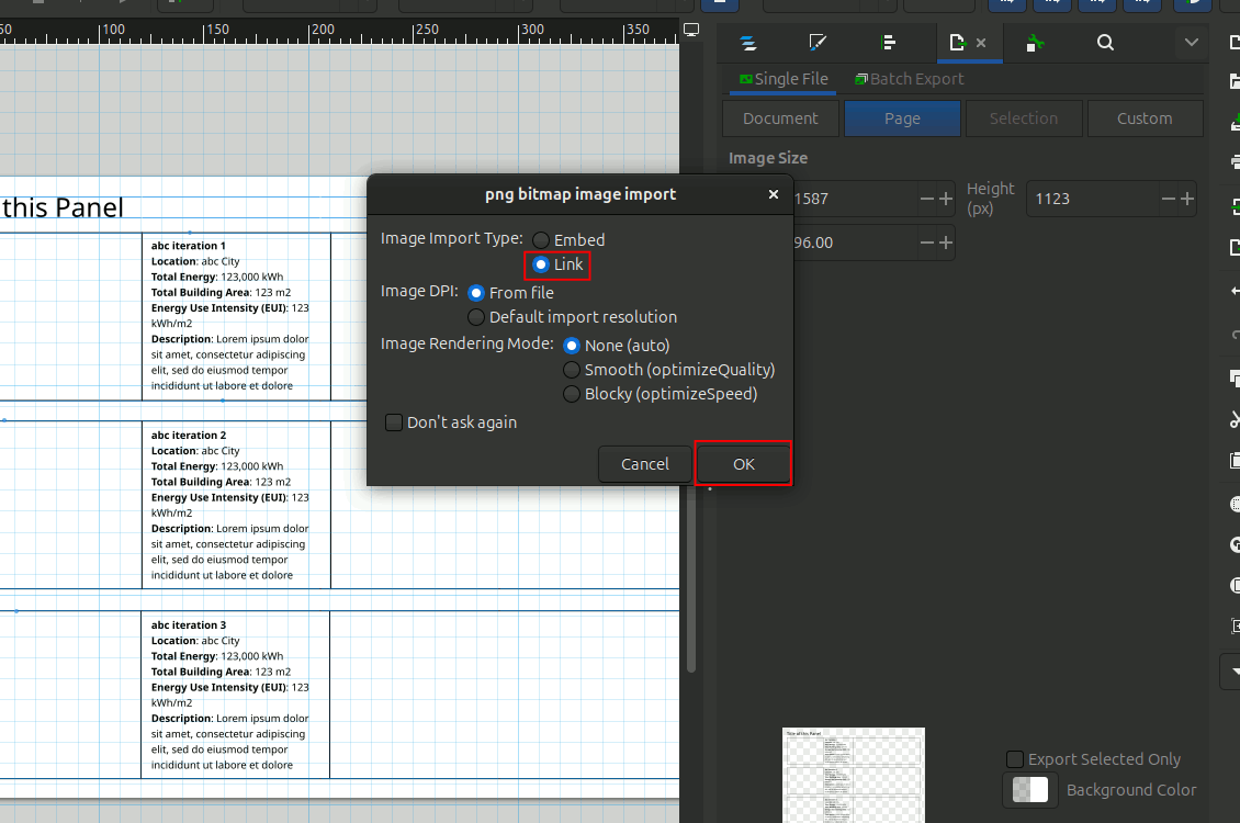 Import the image into Inkscape. In Inkscape go to File -> Import. Choose the image you want to import and click on Open. In the import dialog box choose Link.