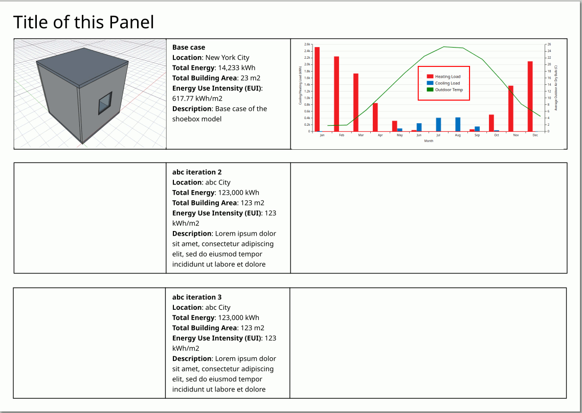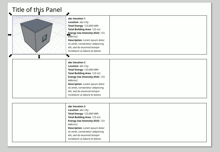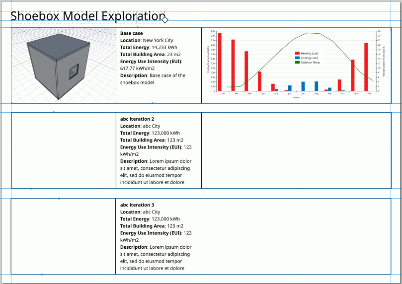 Lets change the title of the panel to ‘Shoebox Model Exploration’. Double-click on the title text box and change the title. Adjust it back to the position with help from guides (turn them on).