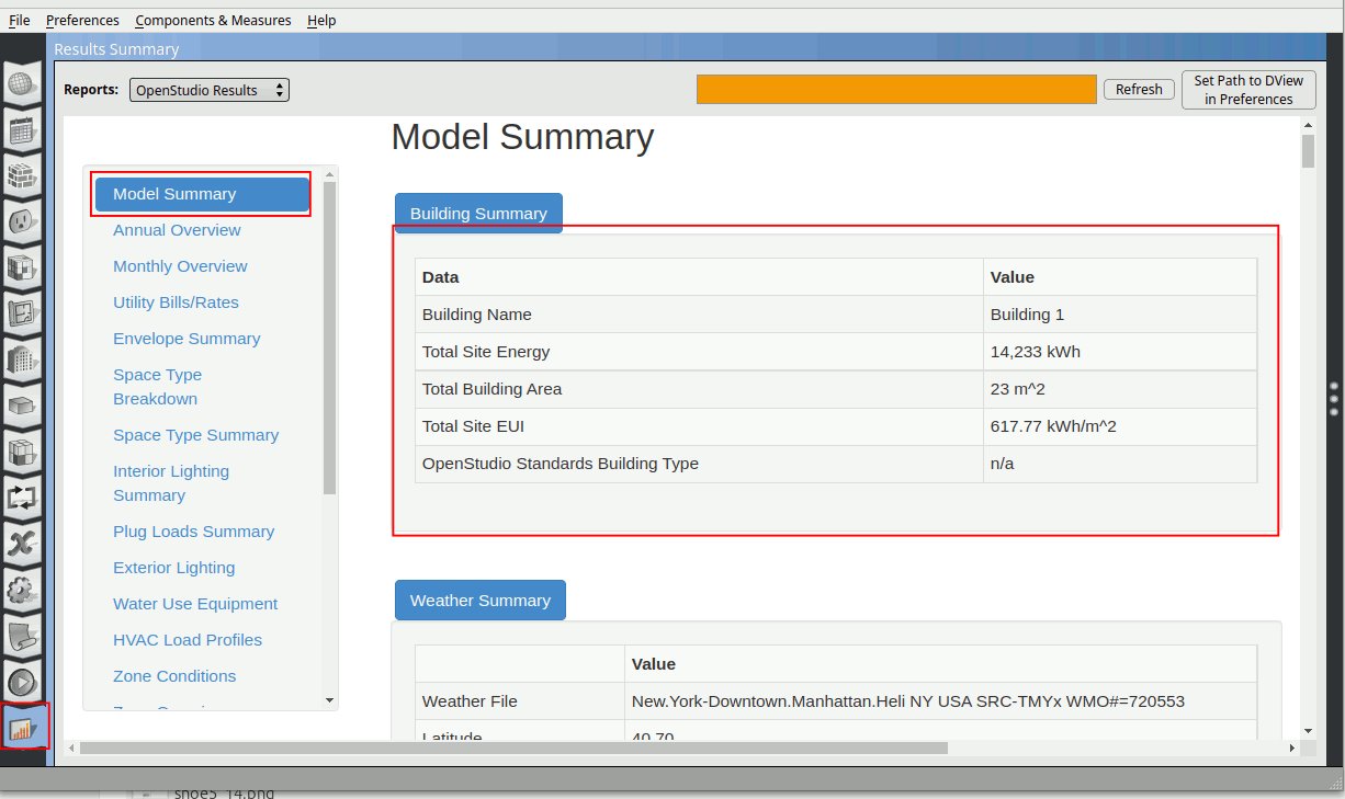 Now lets go to the OpenStudio Results Summary tab again and go to Model Summary.
