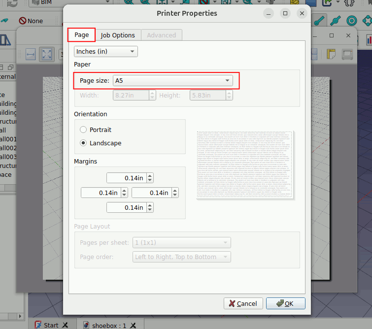 At the Print window you can click on Properties. In the Properties window you can decide how big you want your image to be by specifying the ‘Paper size’. In this case I specify it to be ‘A5’ size.
