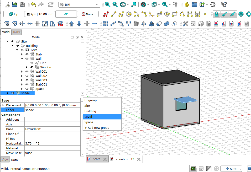 Select Level. The shade will be added into the Level group. Save your model.