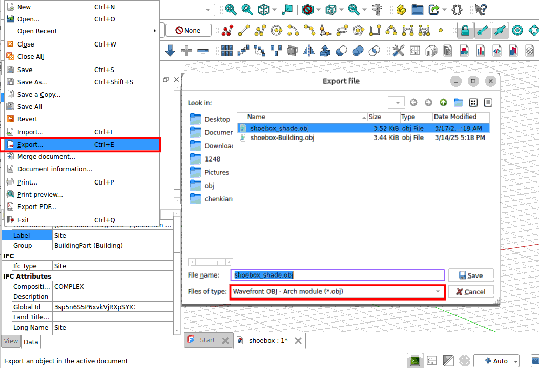 Load the shoebox_shade.obj file that was exported from FreeCAD.