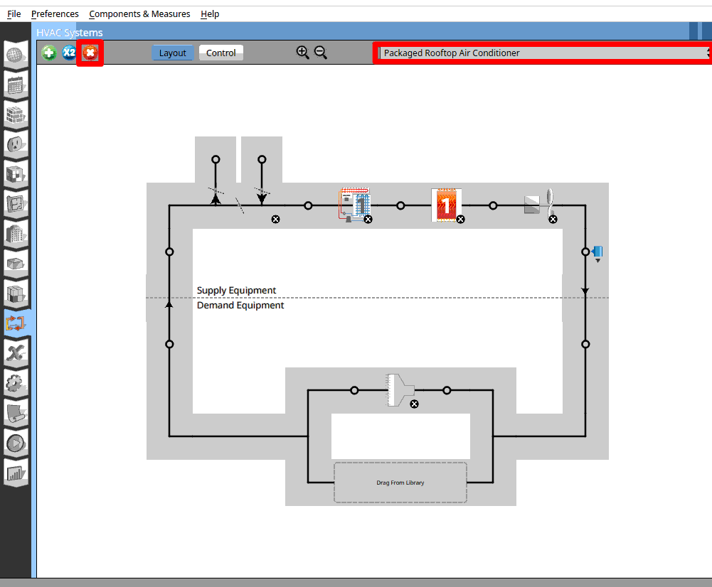 Remove the ‘Packaged Rooftop Air Conditioner’. In the HVAC systems tab. Click on the ‘x’ icon.